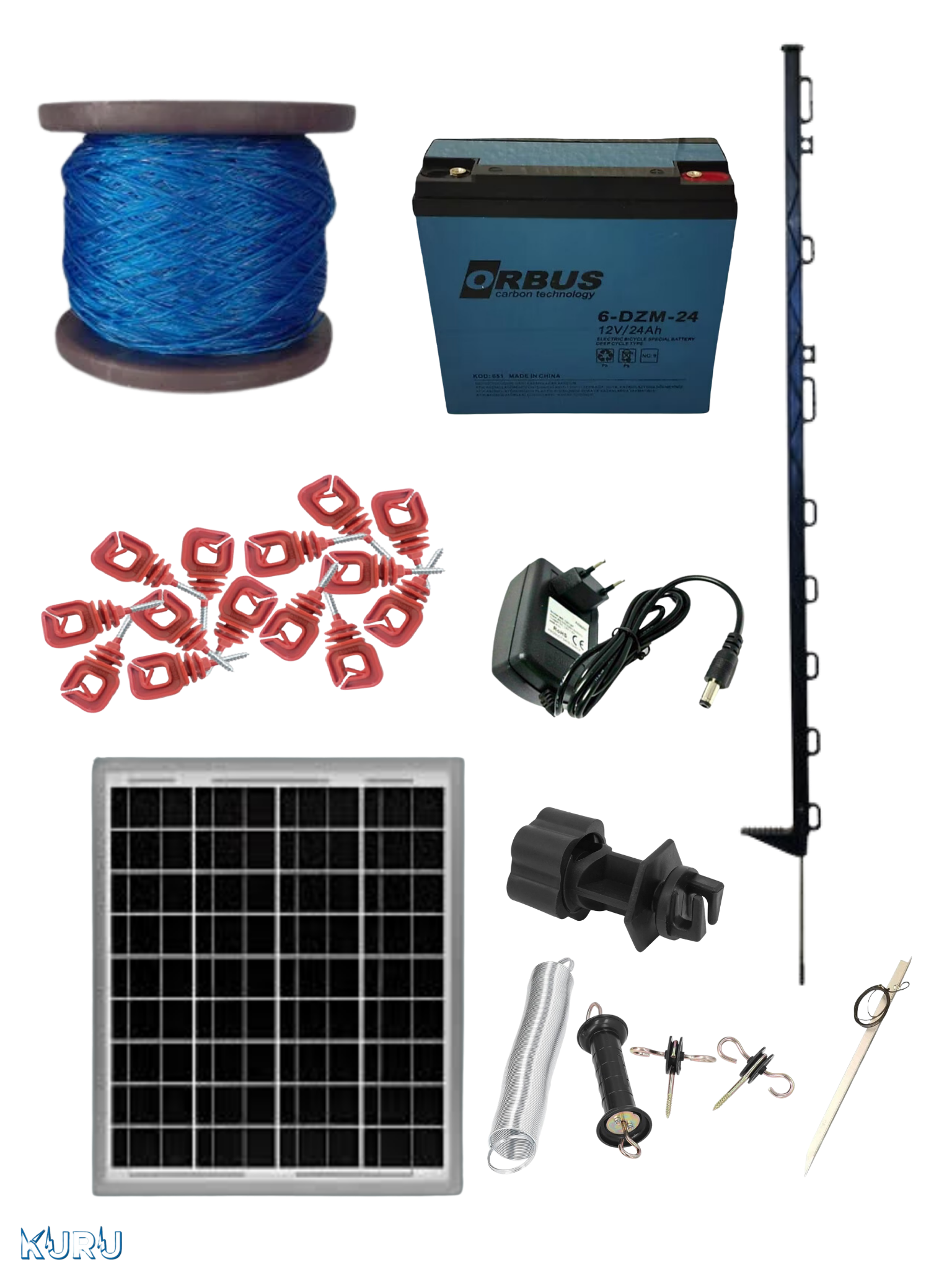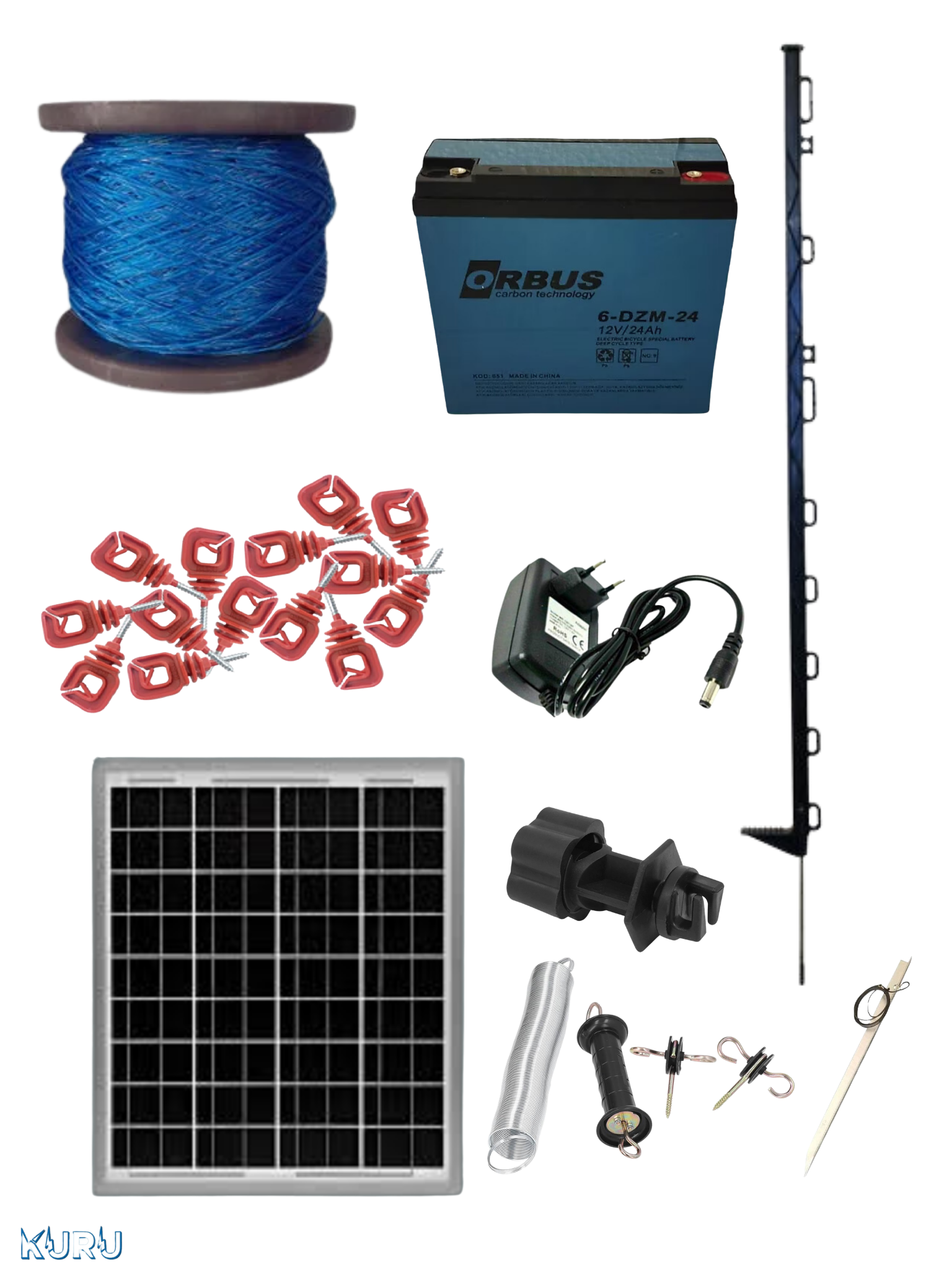 30.000 V SENSÖRLÜ ELEKTRİKLİ ÇİT MAKİNESİ / 24 AMPER JEL AKÜ /25 WATT MONOKRİSTAL GÜNEŞ PANELİ /1000 METRE İP/ 200 ADET İZALATÖR LÜ SET 3
